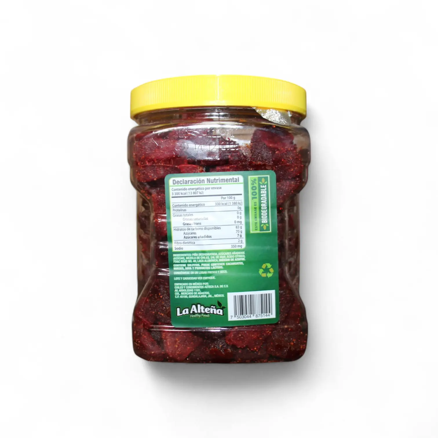 Si buscas un snack que combine lo mejor del dulce, ácido y picoso, nuestra piña deshidratada con chile es justo lo que necesitas. Este clásico mexicano está hecho con trozos o rodajas de piña cuidadosamente deshidratados y cubiertos con una mezcla irresistible de chile en polvo, azúcar y un toque ocasional de limón. ¡Es un verdadero placer para tu paladar!
